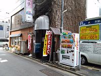 紳士服「青山」の裏側です。1Fがインドレストランです |